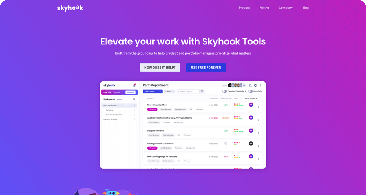 Create a SaaS product to be used for project management and project health monitoring using logged project data and a project value scoring system. Information includes project tasks, dependencies, risks, costs, and effort, among other things.